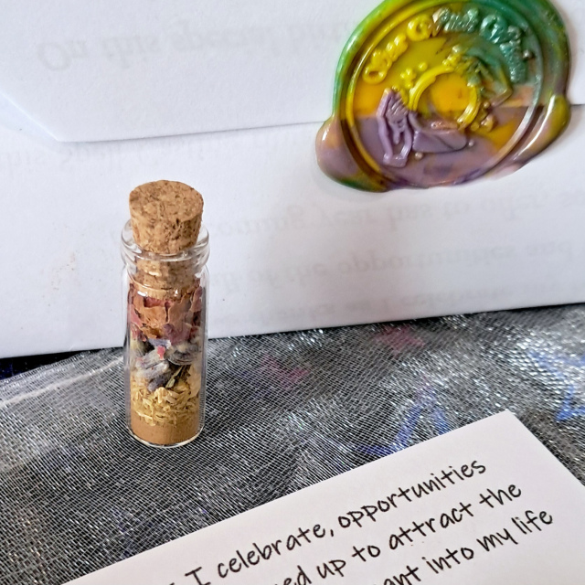 The beautifully wax sealed spell is charged with positive intent to enhance the experience and outcome of your spell casting ritual and the powerful intentions you are manifesting, and each special Birthday Celebration Kit will be chosen by Sarena using powerful energies that she draws upon for each kit as she chooses a COLOUR THEME for the Wax Seal and the specially chosen Elementals for your individual kit, colours will vary from all of the spectrum and rainbow colours depending on the spiritual energies and metaphysical connections Sarena is feeling as she creates your unique and beautiful Spell kit.