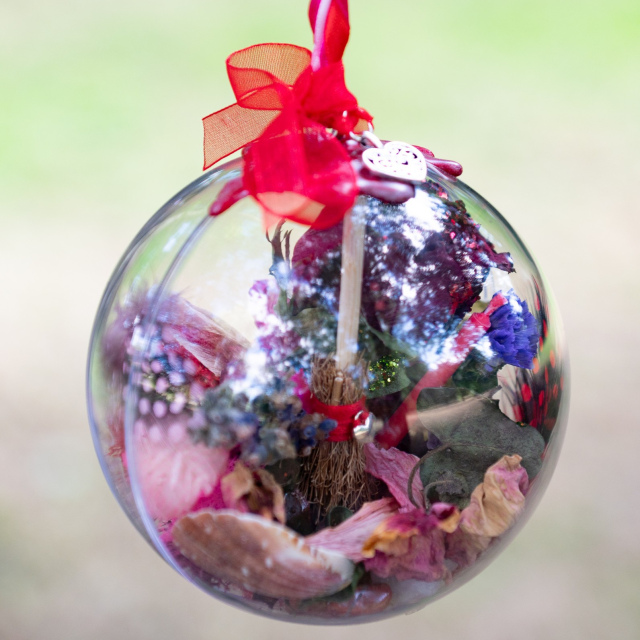Each Witches Ball is created using a beautiful and magical mixture of herbs, flowers, elementals and crystals to bring you and your home protection, love and blessings (these vary due to seasonality and availability).